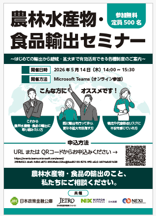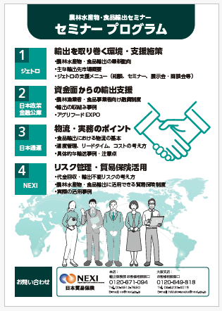 共催 :日本政策金融公庫、日本貿易振興機構(ジェトロ)、日本通運、日本貿易保険(NEXI)